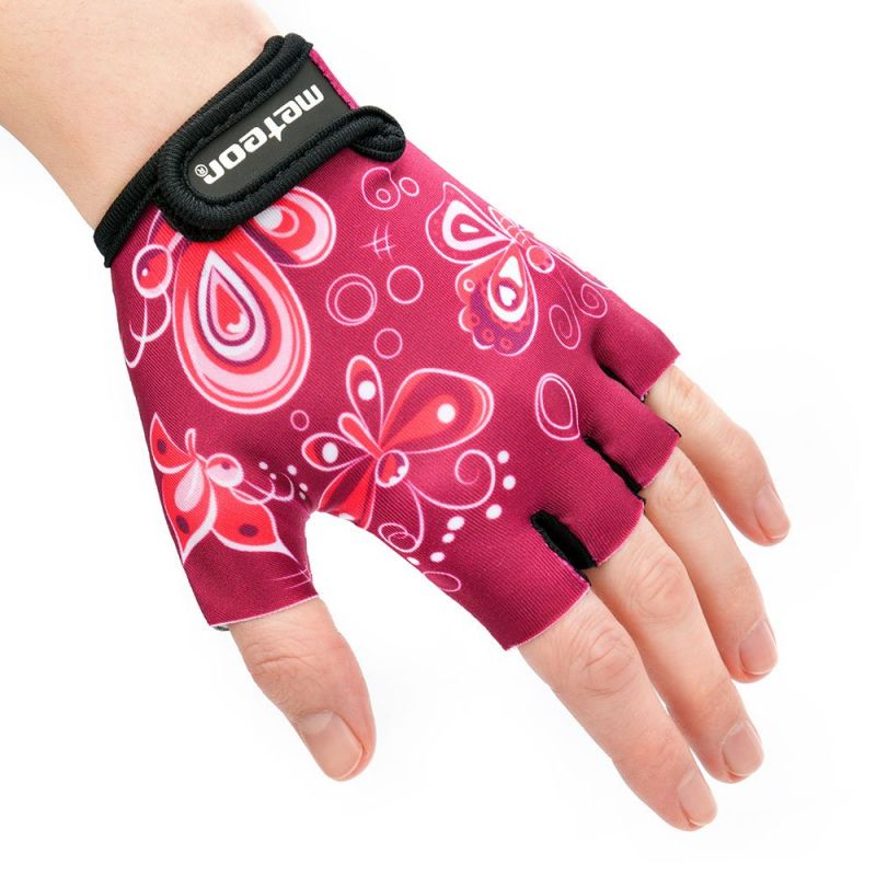 - Meteor cycling gloves protect the most sensitive area of the hand. The inner part is made of a delicate, soft eco-leather. The material is supplemented with shock-absorbing foam inserts. The outer part is made of a soft material with a colorful print.