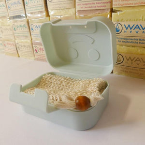 You are well equipped with it on the go. The box offers enough space for two bars of soap or a bar of soap and a sisal bag. Bottom with a recess all around so that the soap lies dry. (Delivery without sisal bags. Please order separately.)